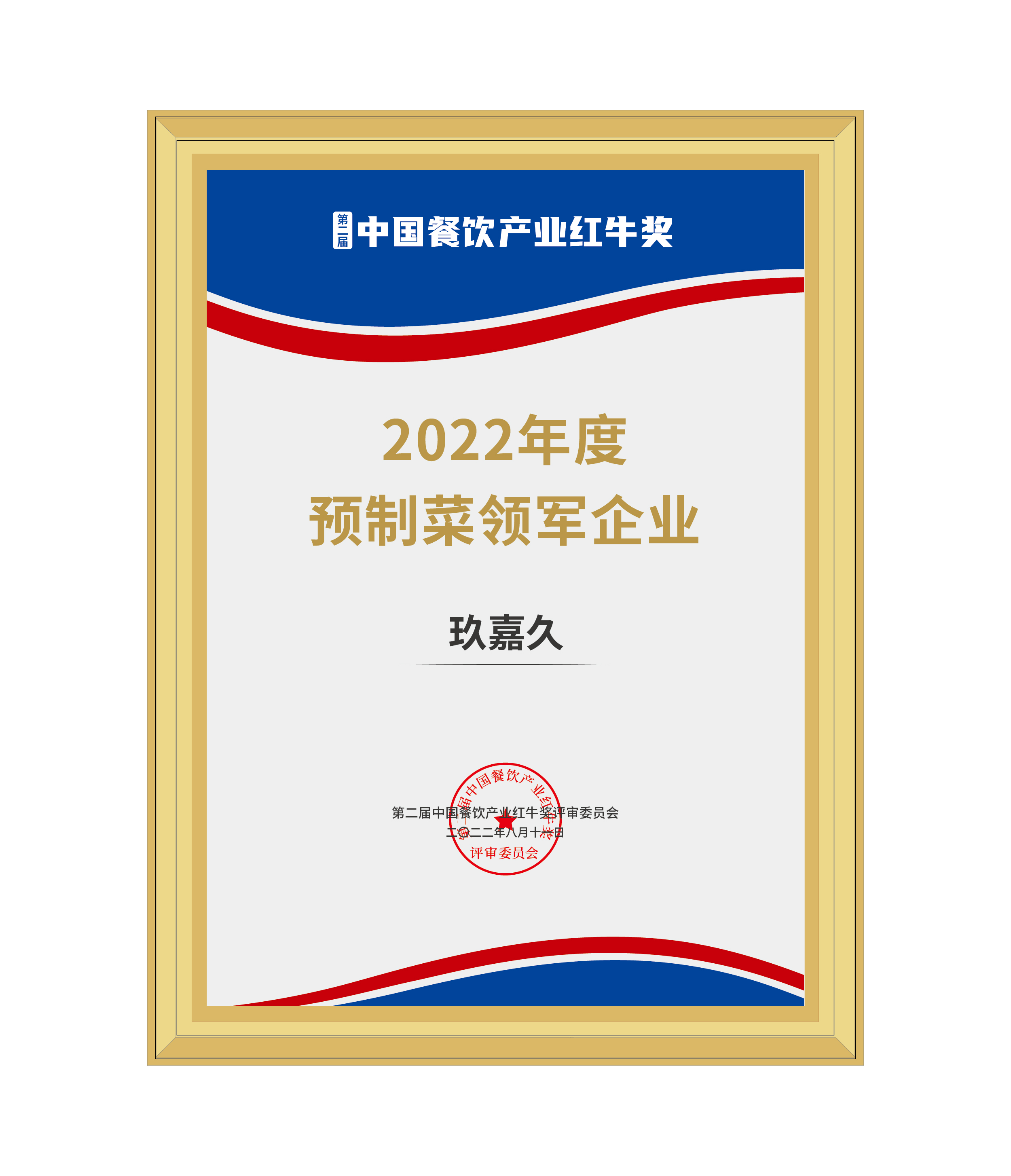 在2021年度玖嘉久就獲得了由“中國餐飲產(chǎn)業(yè)紅牛獎”頒發(fā)的「2021年度中國餐飲產(chǎn)業(yè)影響力品牌(企業(yè))」。今年,“2022年度預(yù)制菜領(lǐng)軍企業(yè)”作為本年度“第二屆中國餐飲產(chǎn)業(yè)紅牛獎”新增榜單之一,玖嘉久成為第一批獲得此殊榮的企業(yè)!