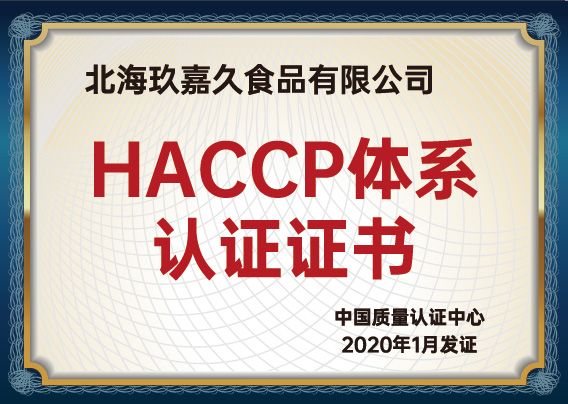 HACCP體系認(rèn)證證書